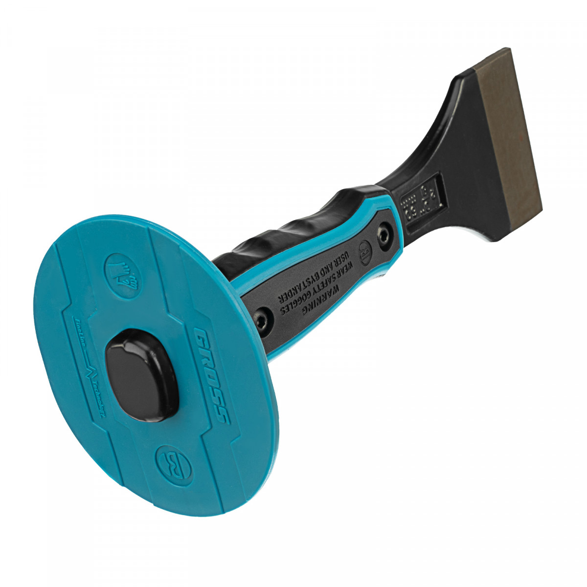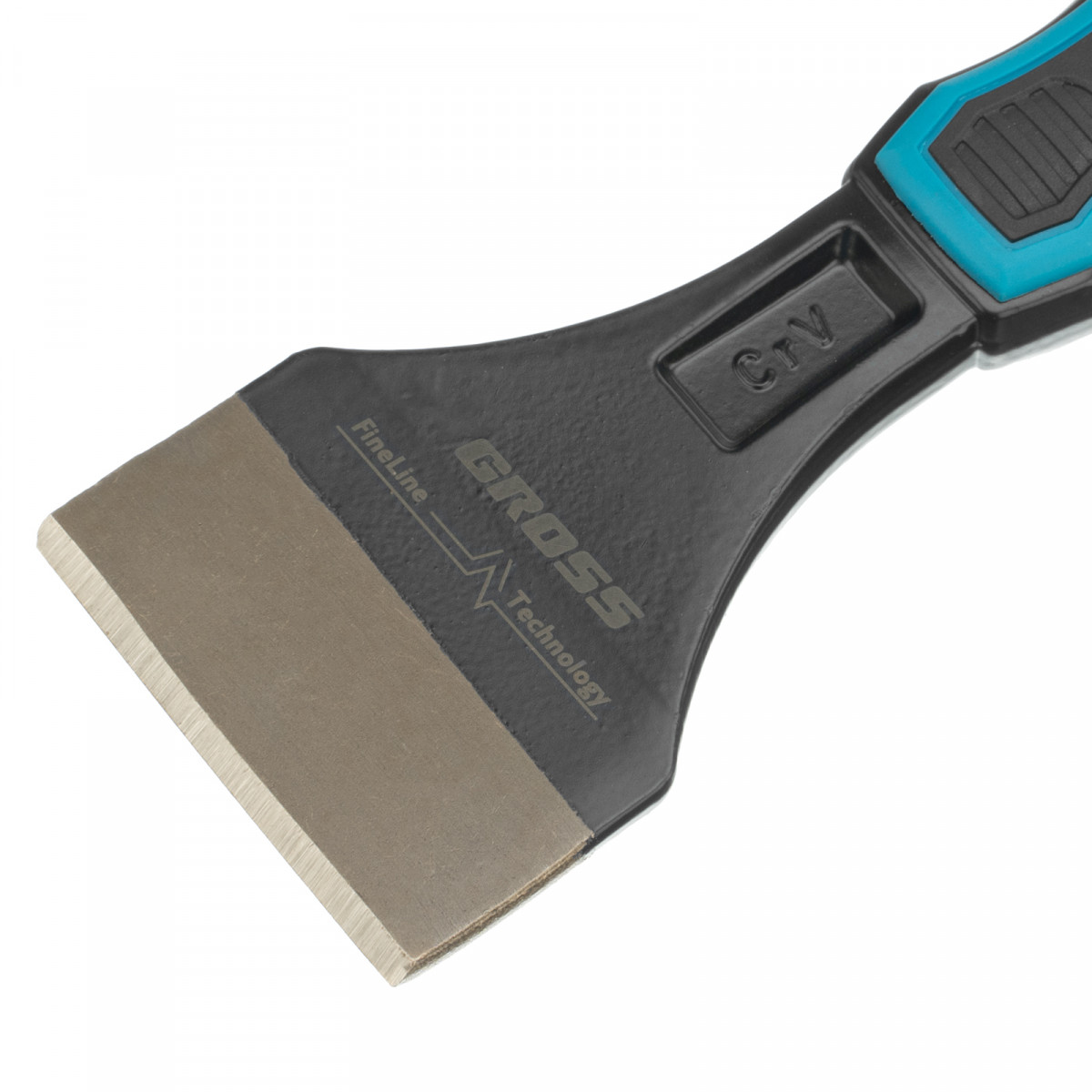 Зубило-конопатка Gross 18715 размером 215 х 60 мм-2-3/8 дюйма — ручной режущий инструмент, работающий под ударным воздействием молотка или киянки. Рассчитано на работу с деревянным срубом, плиткой, камнем, кирпичом. Используется для запечатывания швов, монтажа утеплителя в деревянных постройках, демонтажа облицовки и решения других задач.